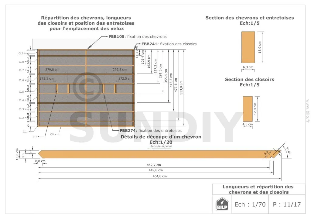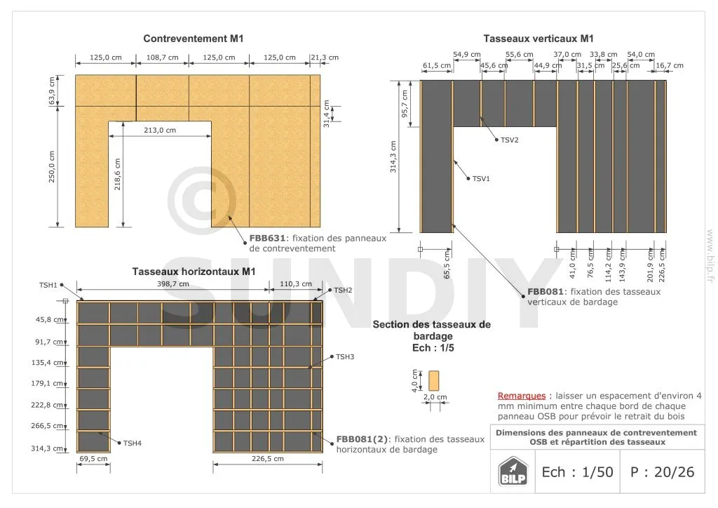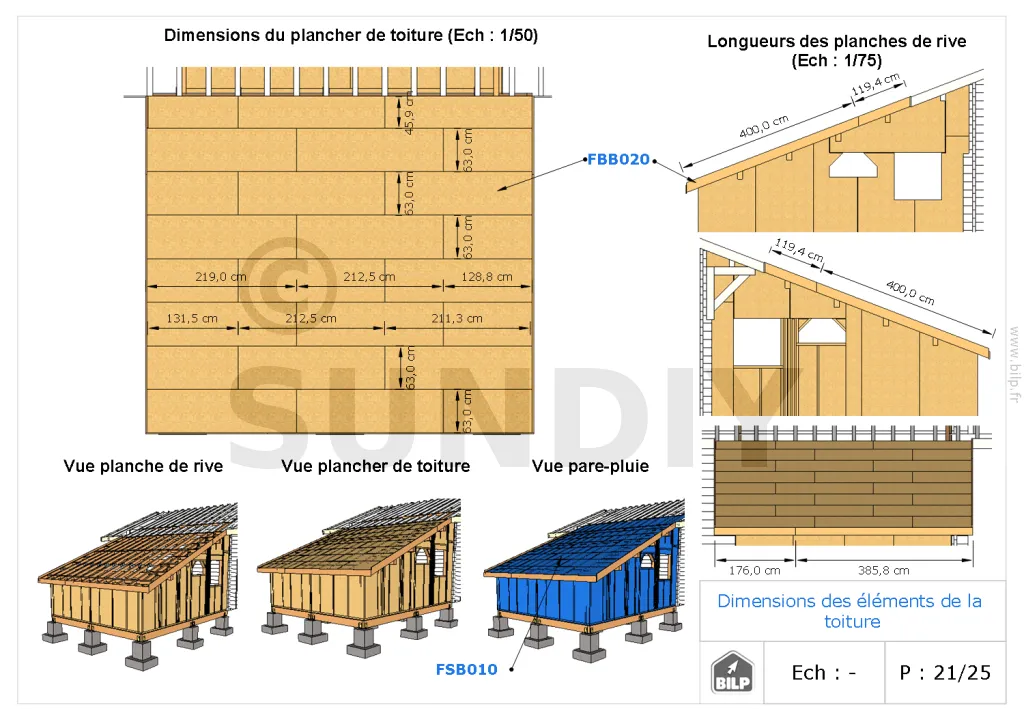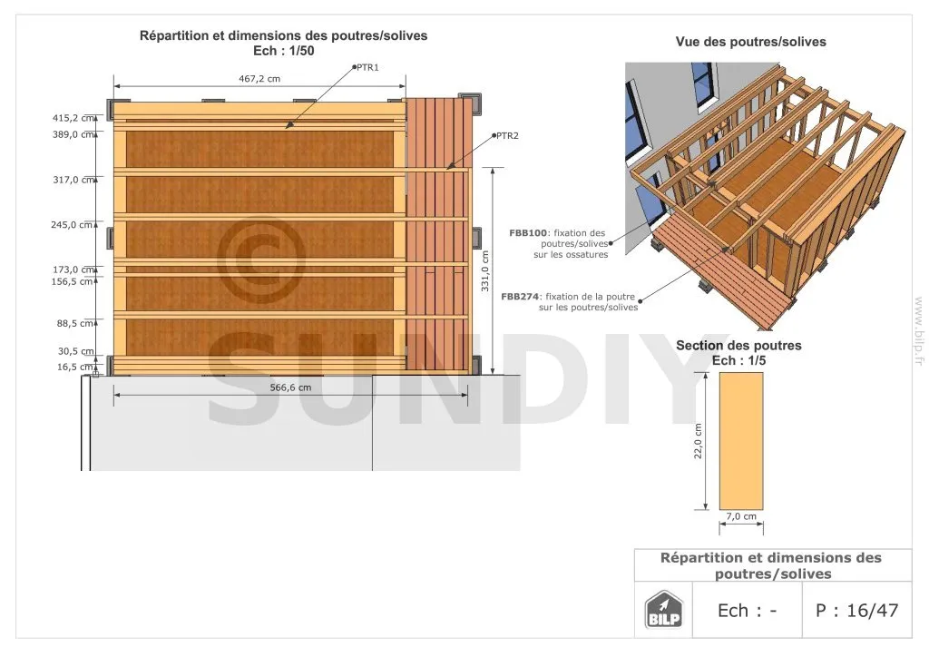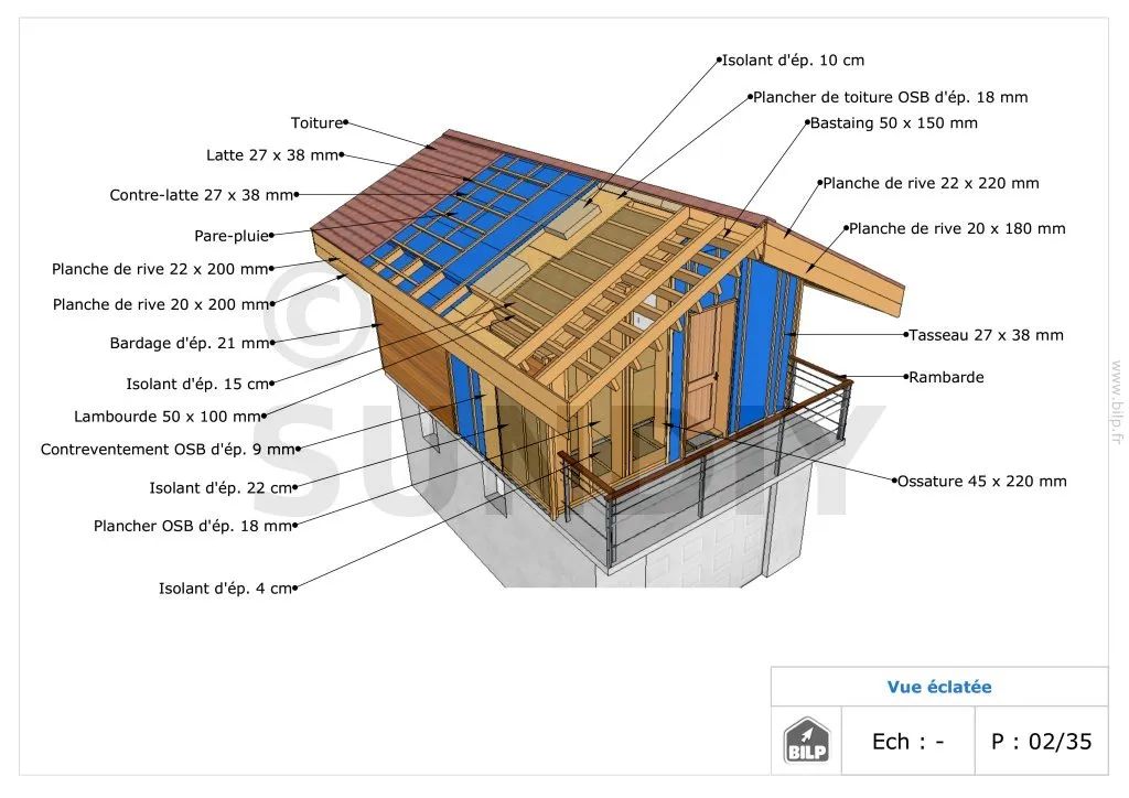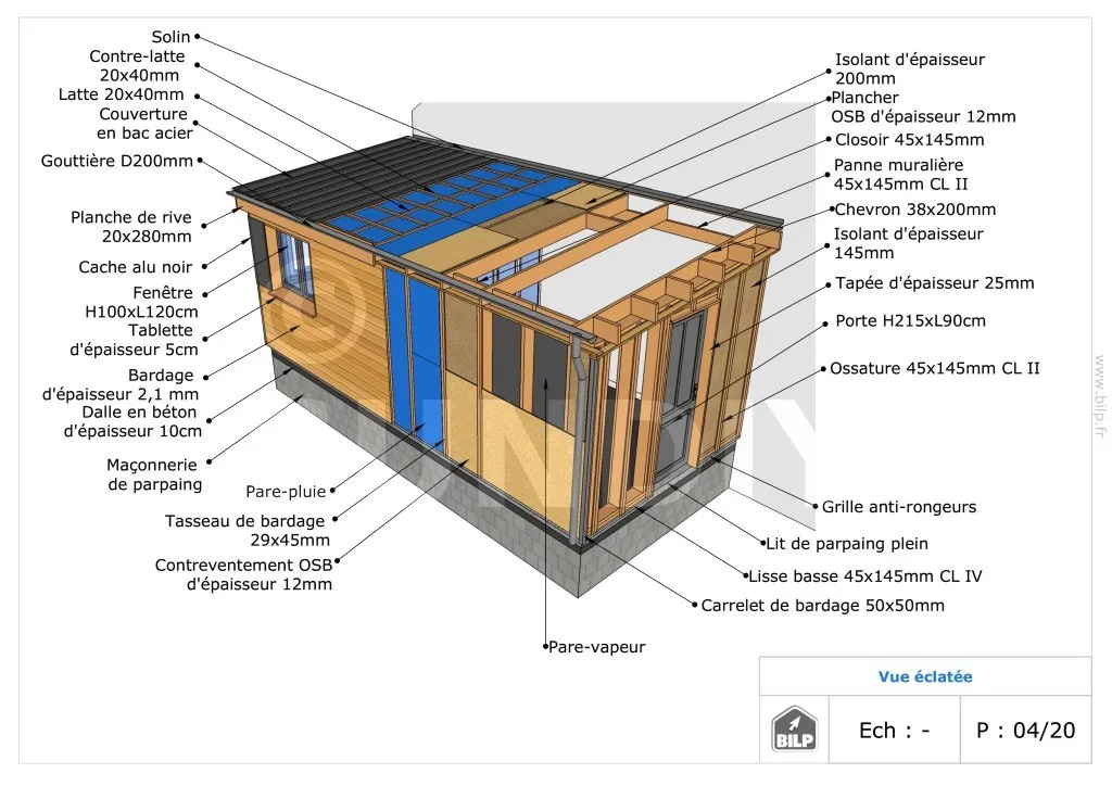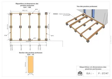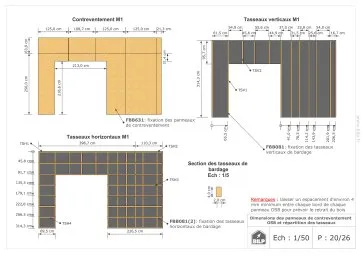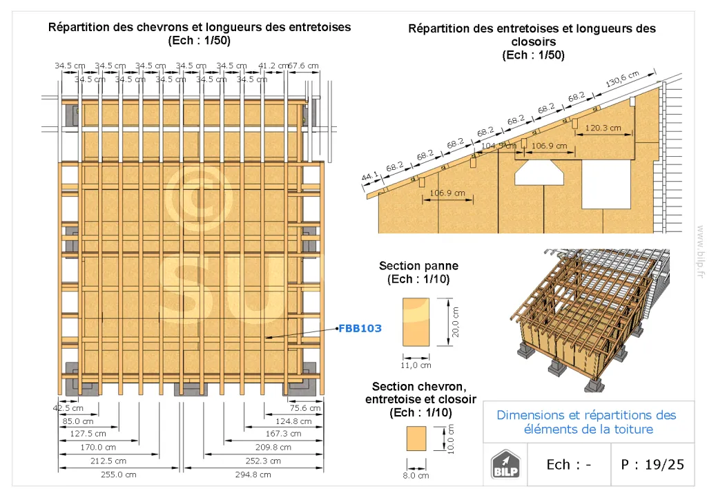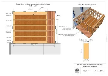 Les plans de structure à l’échelle sont faciles à lire et à comprendre. Ils vous permettrons de réaliser vous-même la structure de votre projet. Les détails de réalisation sont indiqués. Nous calculons et optimisons les dimensions et les sections de pièces de bois.