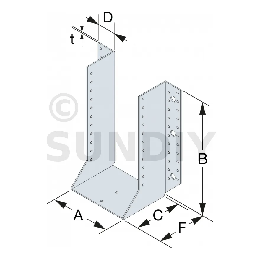 Les sabots GSE en acier galvanisé offrent une flexibilité grâce à des largeurs au choix selon les plages indiquées. Cette caractéristique permet de s’adapter parfaitement aux dimensions spécifiques des éléments de construction, garantissant une compatibilité optimale et une fixation stable.