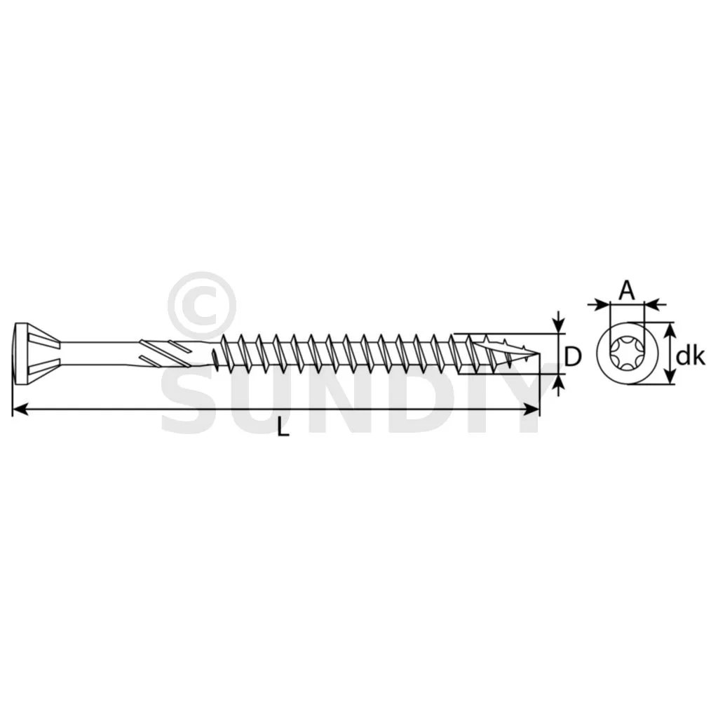 Vis pour lames de terrasse bois, tête fraisée autofraisante, inox A2