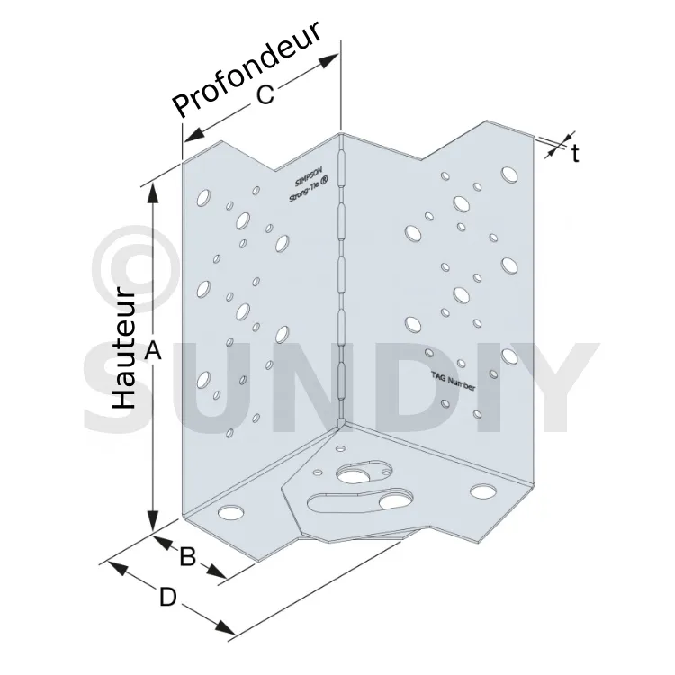 Équerre réglable pour dalle bois - Fixation poutre bois de hauteur 235 à 310mm - Réf. ABF230