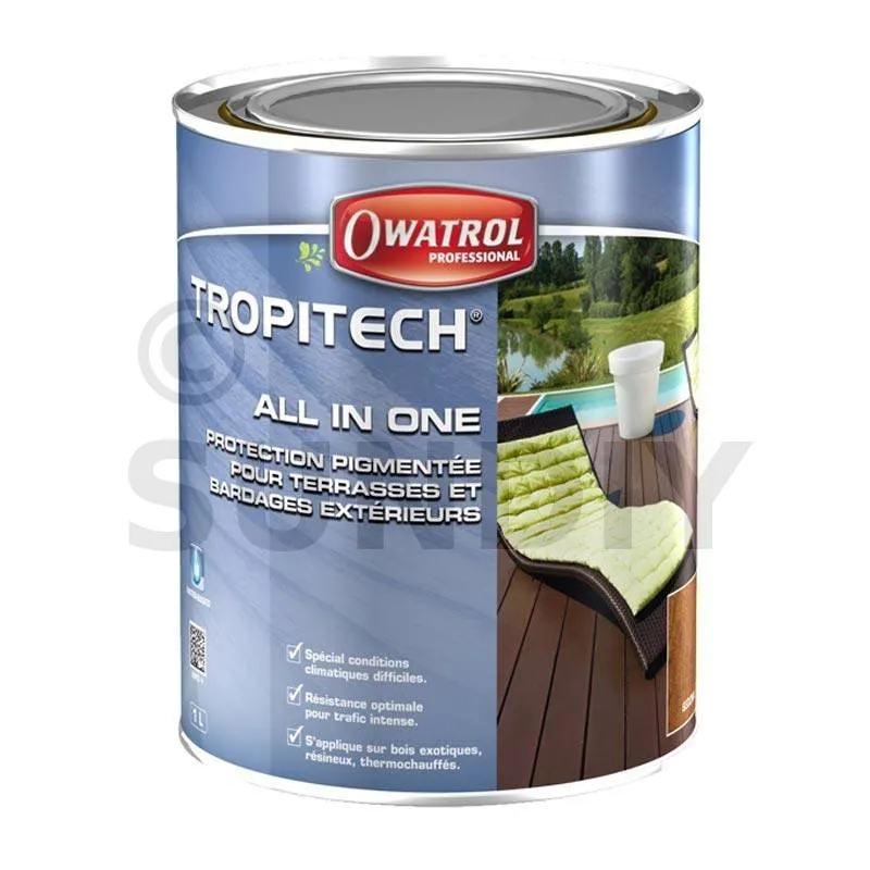 TROPITECH "All in One" : protection teintée LONGUE DUREE pour terrasses et bardages. Phase aqueuse