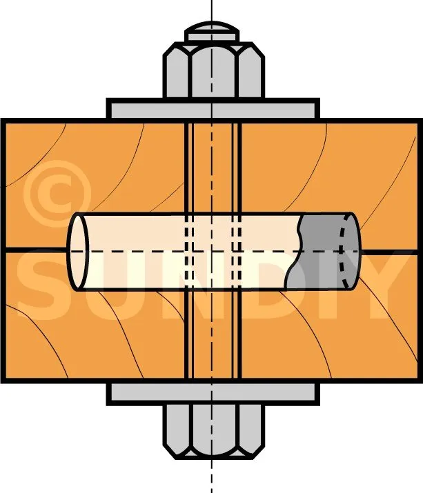 1. Usiner les deux éléments bois en réalisant les gorges circulaires et les perçages pour le boulon.