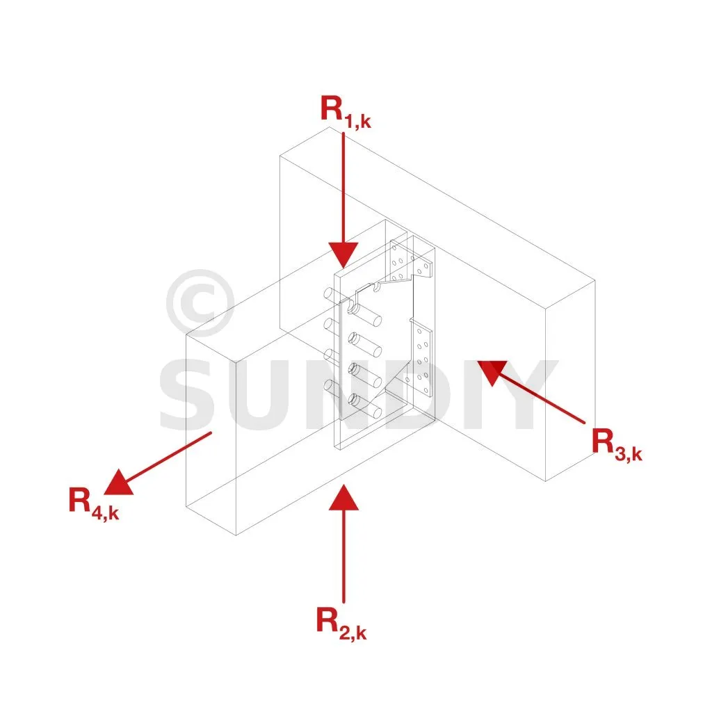 La broche supérieure n’est pas considérée pour la reprise de charge au soulèvement car elle est placée dans un perçage ouvert.