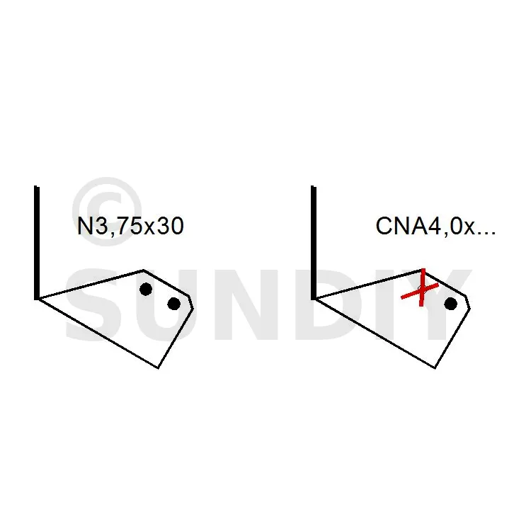 - Pointes annelées CNA Ø 4.0 x 35 ou CNA Ø 4.0 x 50 mm.