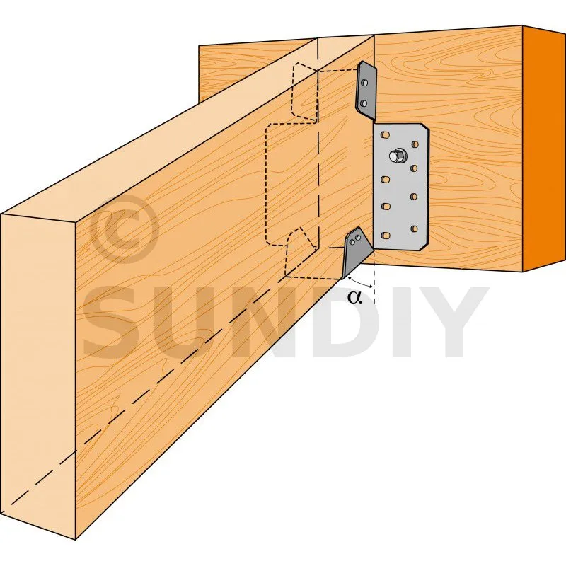 Le processus de fixation de ces connecteurs de charpente est conçu pour être simple et efficace. Ils sont généralement fixés aux éléments porteurs par des vis ou des boulons, offrant une connexion solide. Il suffit juste d’ajuster l’inclinaison directement sur site, pour éviter de réaliser des coupes précises et des changements ultérieurs. - Structure et durabilité :