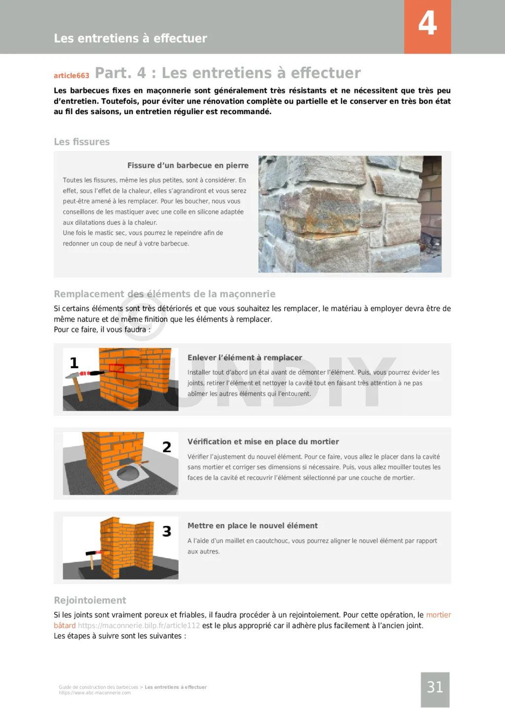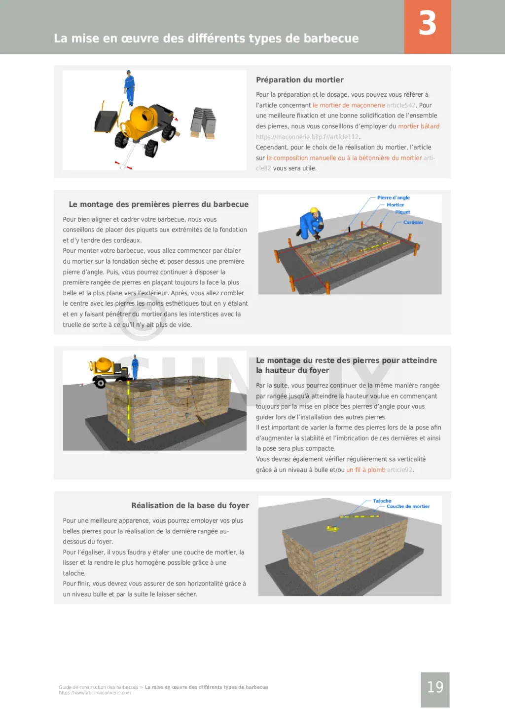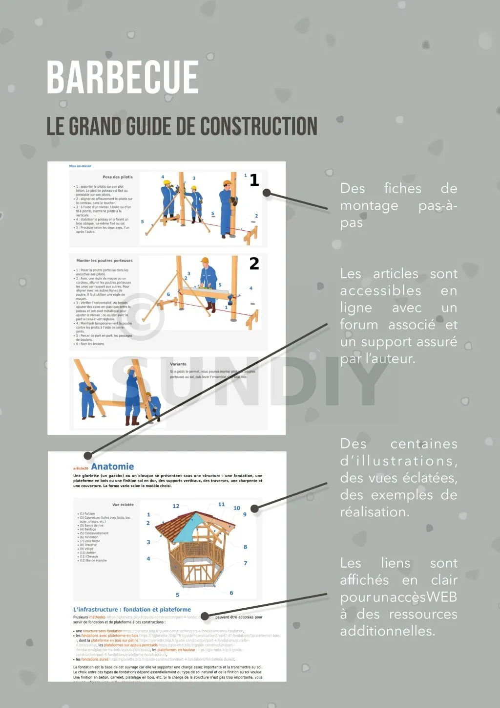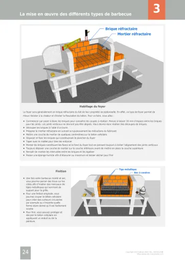 Des informations concrètes pour votre projet. Tous les secrets, tous les trucs et astuces pour réussir la construction de votre barbecue. Toutes les techniques, tous les modèles vous sont décrits de façon objective et indépendante. Des vues détaillées pour vous décrire toutes les étapes de la construction.