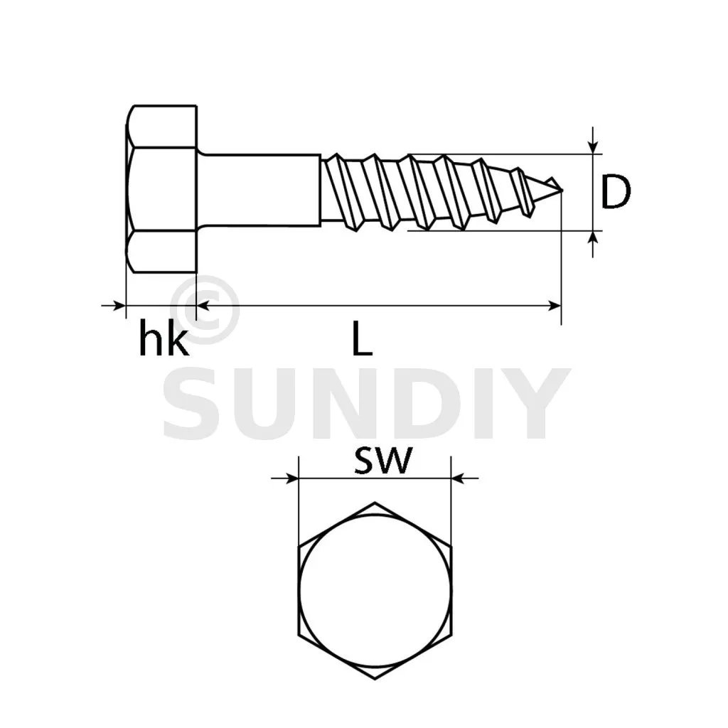 DIN 571 est une norme allemande pour une vis à bois hexagonale. Les vis DIN (Deutsches Institut für Normung) sont des standards techniques reconnus en Allemagne et internationalement pour leur précision et leur qualité.