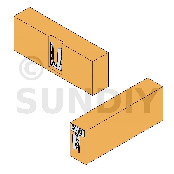 L’étrier à queue d’aronde en acier ETSN est un connecteur innovant et très discret. Il permet de reproduire l’esthétique d’un assemblage traditionnel à queue d’aronde. La partie femelle est placée sur la poutre porteuse avec des vis CSA ou des pointes CNA, tandis que la partie mâle est fixée à l’extrémité de la poutre portée avec les vis à tête plate.