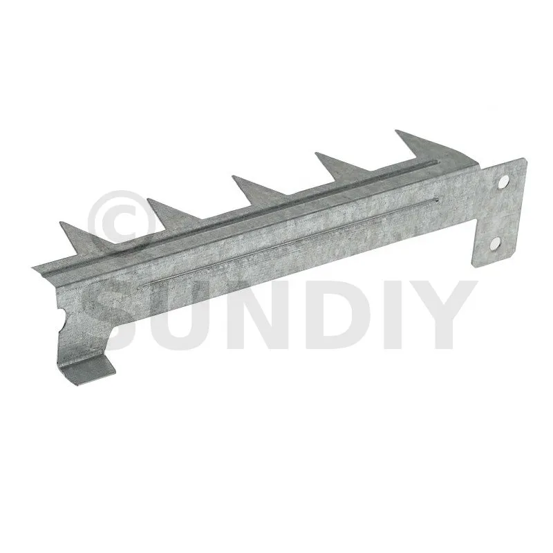 Il faut compter une griffe par équerre pour une bonne fixation de l’isolant. Peut-être coupée pour obtenir deux peignes à fixer sur les chevrons grâce aux deux ailettes qui permettront le maintien de la seconde couche d’isolation entre chevrons.