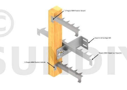 La griffe ABMI permet la fixation de l’isolant contre le support dans le cas d’une Isolation Thermique par l’Extérieur (ITE). Une griffe ABMI est nécessaire sur chaque équerre de bardage EBC.