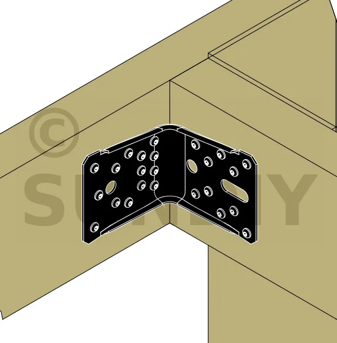 Connexion bois/bois type poutre/poutre - Assemblage avec 2 équerres