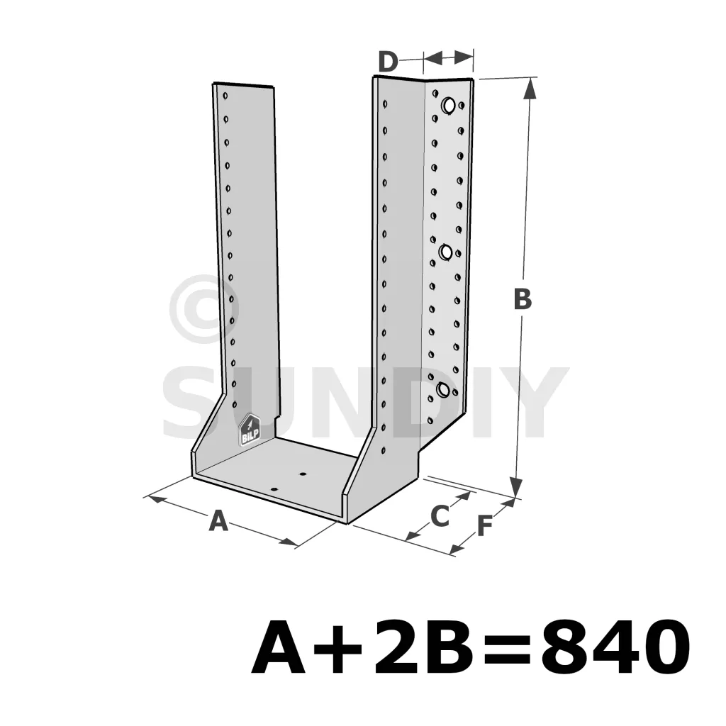 Les sabots GSE en acier galvanisé offrent une flexibilité grâce à des largeurs au choix selon les plages indiquées. Cette caractéristique permet de s’adapter parfaitement aux dimensions spécifiques des éléments de construction, garantissant une compatibilité optimale et une fixation stable.