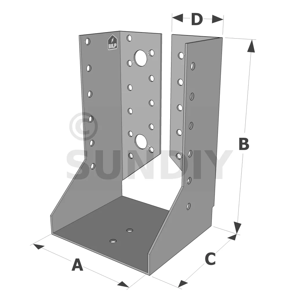 Attention, pour les sabots SAIX à ailes intérieures de largeurs inférieures à 80 mm, les ailes sont recoupées sur la hauteur dans l’axe des perçages de boulons. La fixation sur le porteur est donc uniquement possible par pointes ou vis dans la ligne verticale de perçages Ø5 proche du pli.