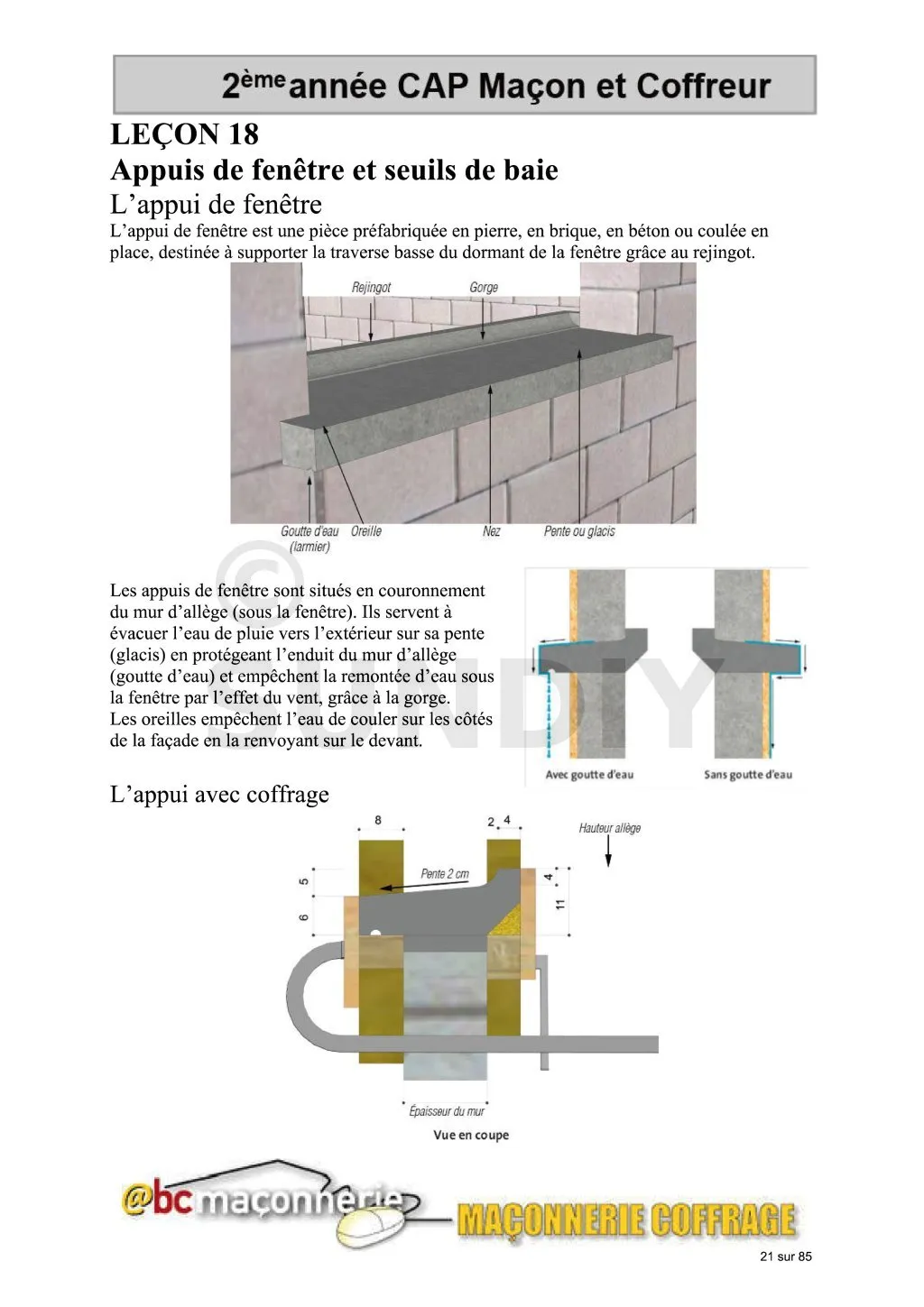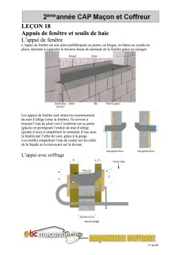 - Leçon 18: L’appui de fenêtre et seuil