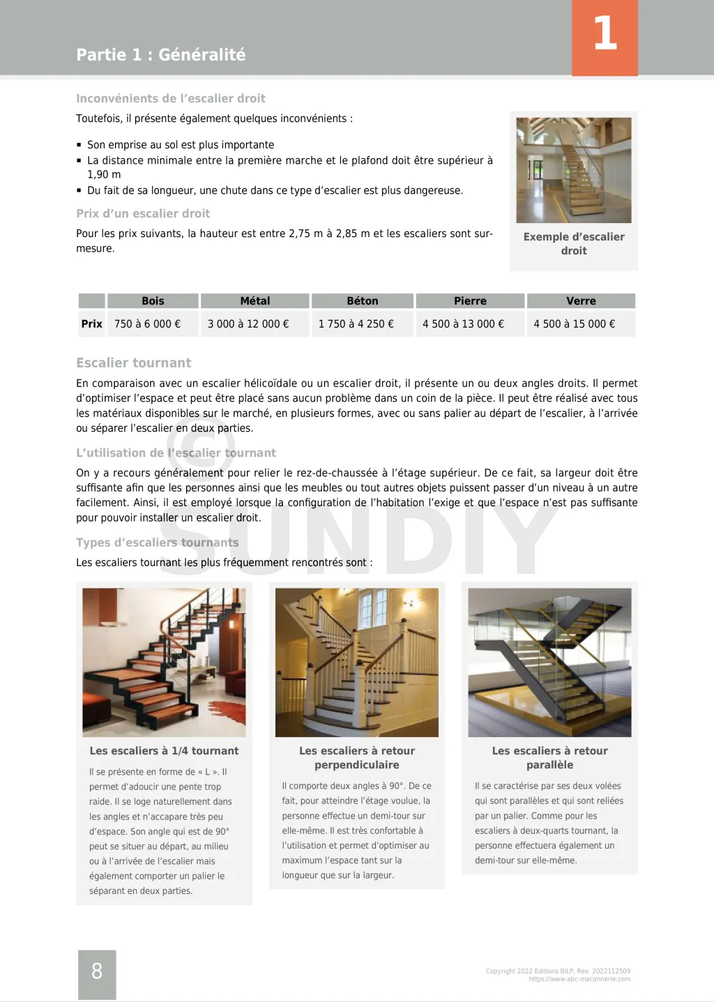 Sommaire du guide de construction des escaliers