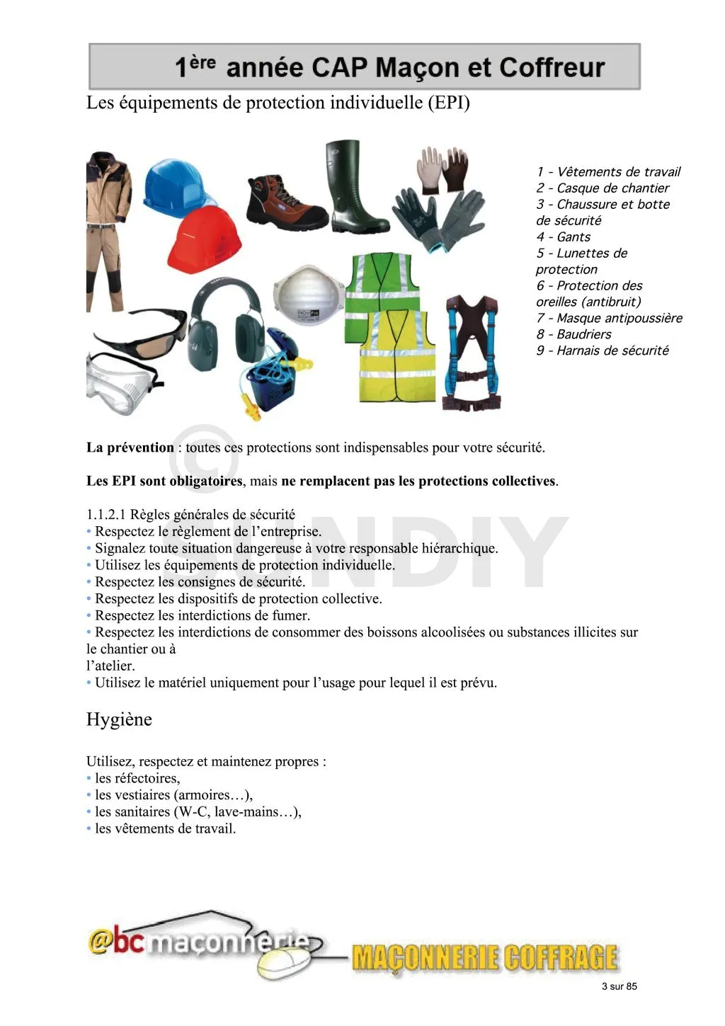 - Leçon 1: Hygiène, sécurité, outillage et terminologie