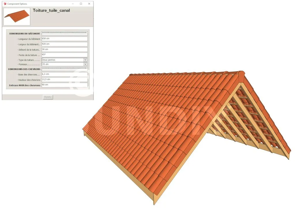 La bibliothèque est composée par des composants SKETCHUP PARAMETRABLES comprenant plusieurs éléments :