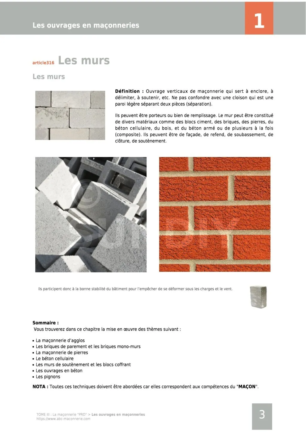 - Leçon 2: La maçonnerie de blocs de ciment