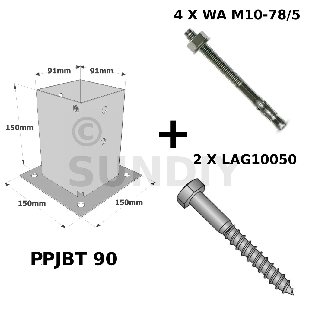| KIT FIX PPJBT 90 | 91 | 150 | 91 | 150 | 150 | 2 | 2.5 | 4 | 4 | 1 PPJBT90 - 4 WA M10-78/5 - 2 LAG10050 |