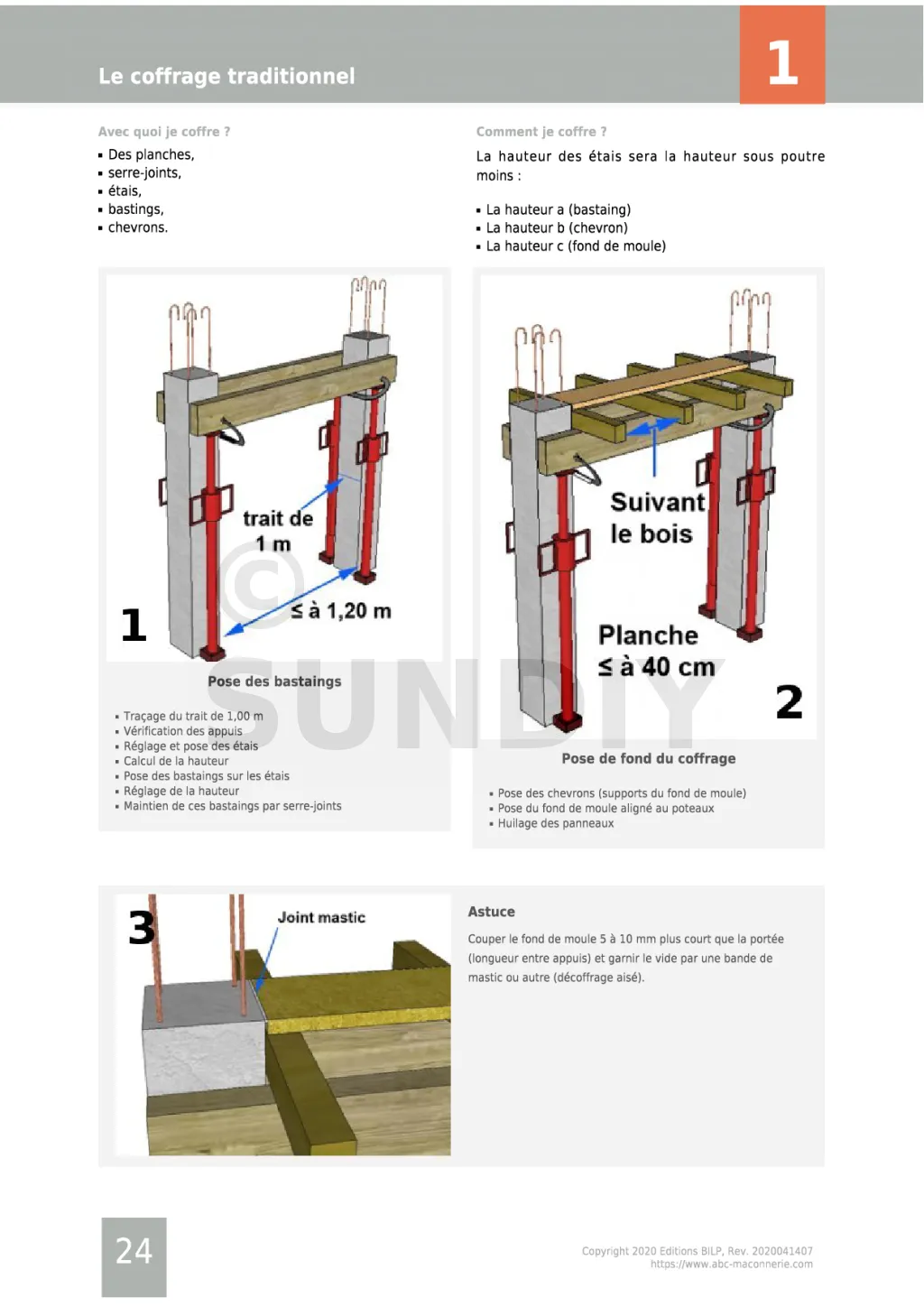 Le guide « Le coffrage » est le tome IV du pack « Expert ». Cet ouvrage est la mise en pratique des théories et astuces dans le Tome I, et est complémentaire avec le Tome III, du fait que le façonnage d’un ouvrage en maçonnerie nécessite un coffrage efficace.
