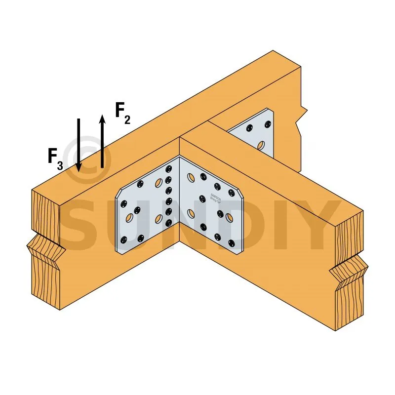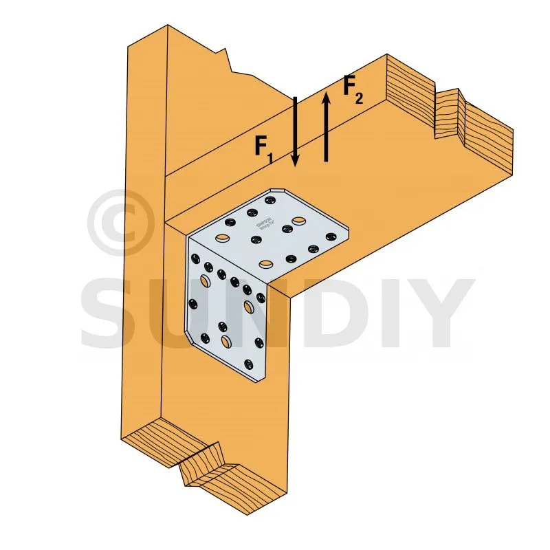 L’équerre AB105 répond à des applications structurelles dans la charpente et la maison à ossature bois.