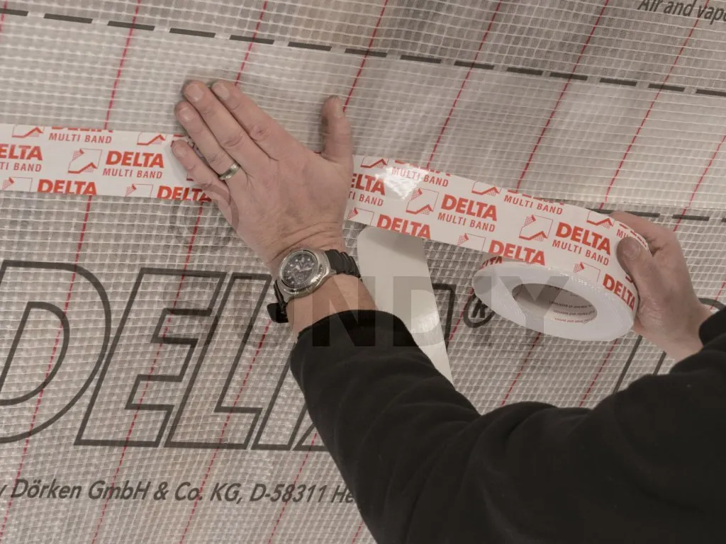 - Collage des recouvrements et des abouts de lés des écrans DELTA®,
