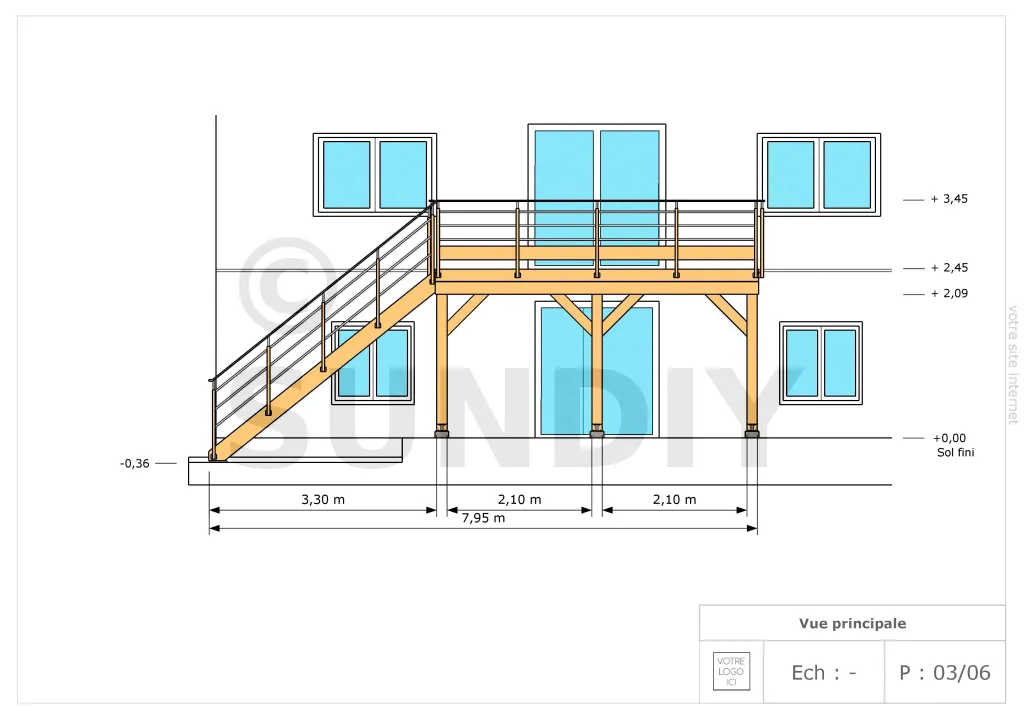 - Le calcul de la structure de votre terrasse (dimensionnement des éléments en bois). Il s’agit de la prestation : la vérification des plans