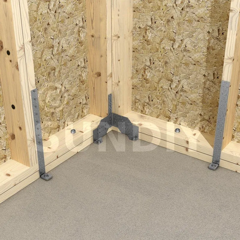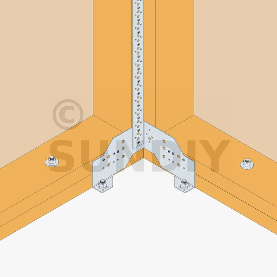 Le connecteur pour panneau bois FCC assure la liaison de murs d‘ossature sur dalle béton. Les trous de pointes et de boulons permettent d‘adapter la fixation en fonction des configurations. Cette référence peut éventuellement être associée à un feuillard perforé type FP30 à fixer sur les montants.