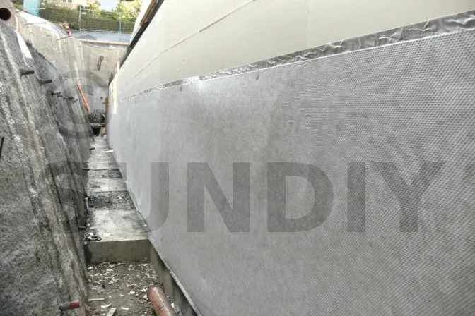 - Protège l’isolation thermique ou l’étanchéité de la paroi de cave contre le poinçonnement, l’arrachement et l’infiltration des eaux de ruissellement ou de remontée.