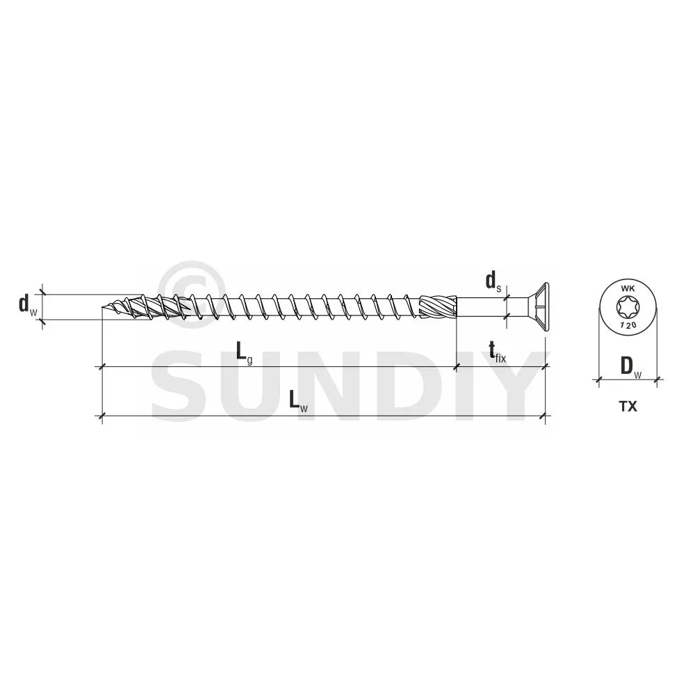 - Tête fraisée avec entrainement torx et nervures de coupe : garantit une finition esthétique.