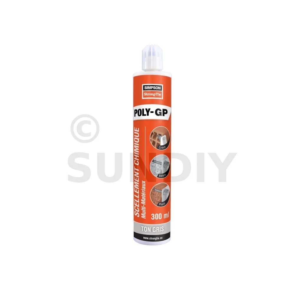 La résine multi-matériaux POLY-GP est un ancrage chimique permettant de fixer les tiges filetées dans le béton C20/C25 à C50/60 et toutes les maçonneries creuses et pleines.