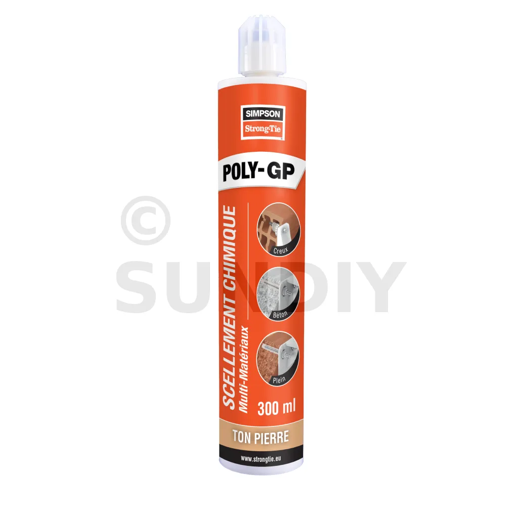 La résine multi-matériaux POLY-GP est un ancrage chimique permettant de fixer les tiges filetées dans le béton C20/C25 à C50/60 et toutes les maçonneries creuses et pleines.