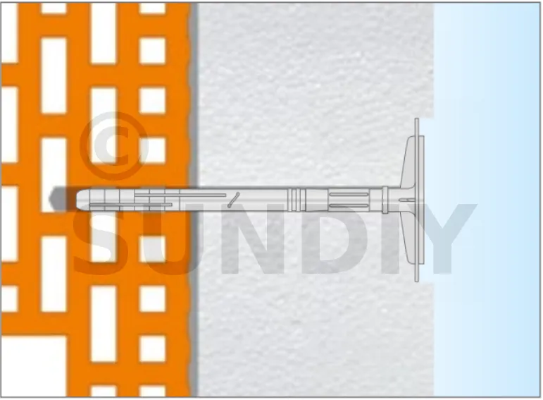 Cheville d’isolation à frapper avec clou en plastique, avec plaque de fixation coulissante