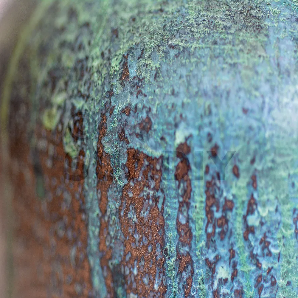 Créer des effets décoratifs sur support cuivre brut et tout autre support revêtu du revêtement spécial à rouiller REACTIV LEAF BRONZE.