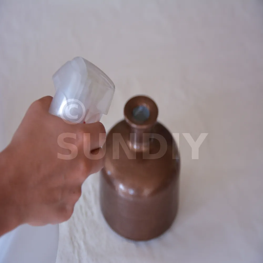 1- Appliquer le BRONZE COPPER SPIRIT sur supports sains, secs et propres. Cette application peut être effectuée à l’aide du pulvérisateur ou d’un outil (chiffon, brosse, éponge,…) permettant d’obtenir des effets décoratifs complémentaires.