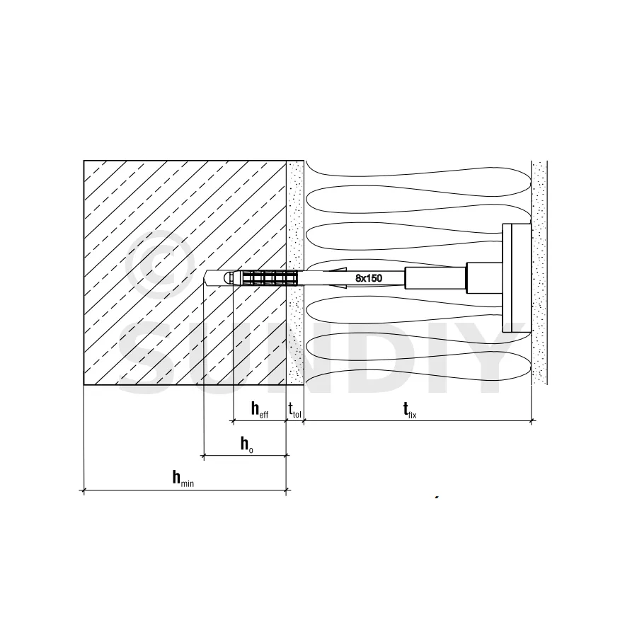 - Profondeur d’ancrage (hef)Substrat cat. A B C D = 35mm,