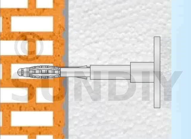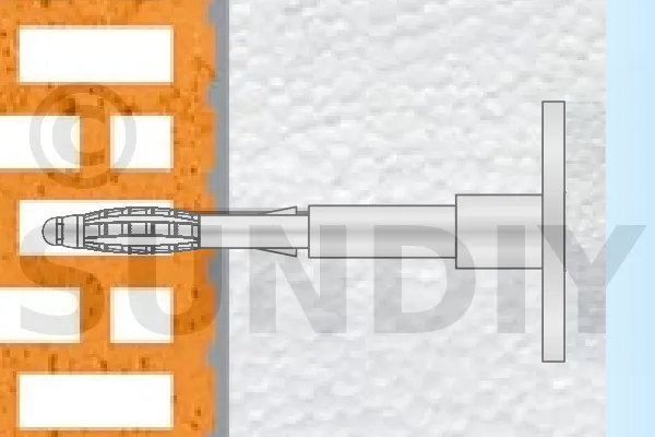Un connecteur avec disque en polystyrène intégré, conforme à la norme ETAG 014, pour fixer le polystyrène EPS (polystyrène expansé) dans différents matériaux de la tête dans les systèmes ETICS, avec une faible conductivité thermique.