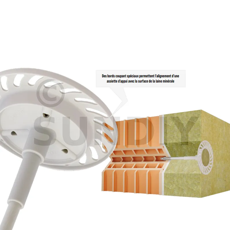 - Les bords coupants spécialement conçus facilitent l’alignement de l’assiette d’appui sur la surface de la laine minérale.