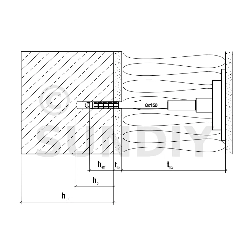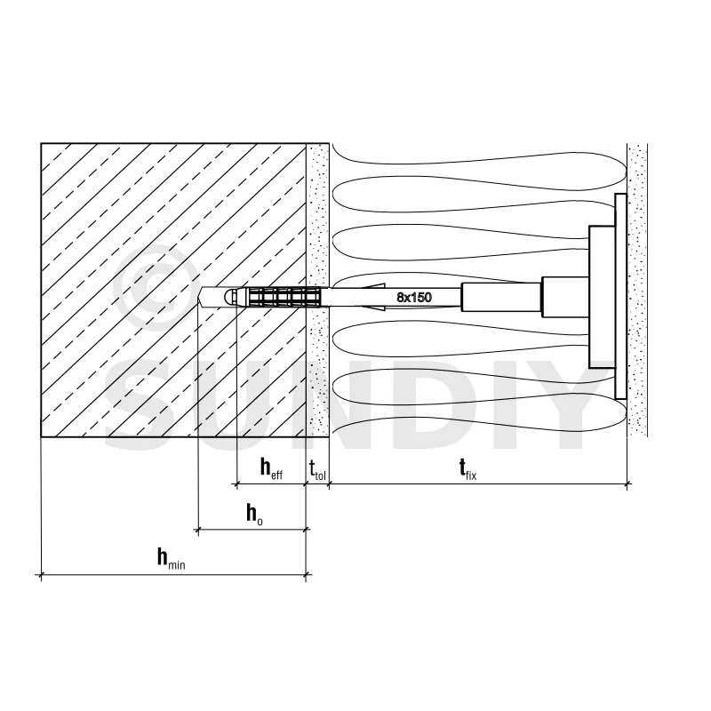 - Profondeur d’ancrage (hef)Substrat cat. A B C D : 35mm