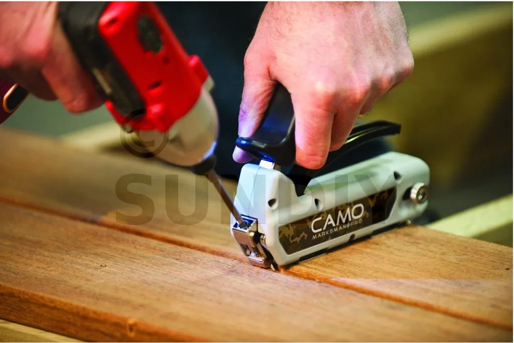 - CAMO dispose d’une gamme complète d’outillage pour la fixation invisible des lames de terrasse.