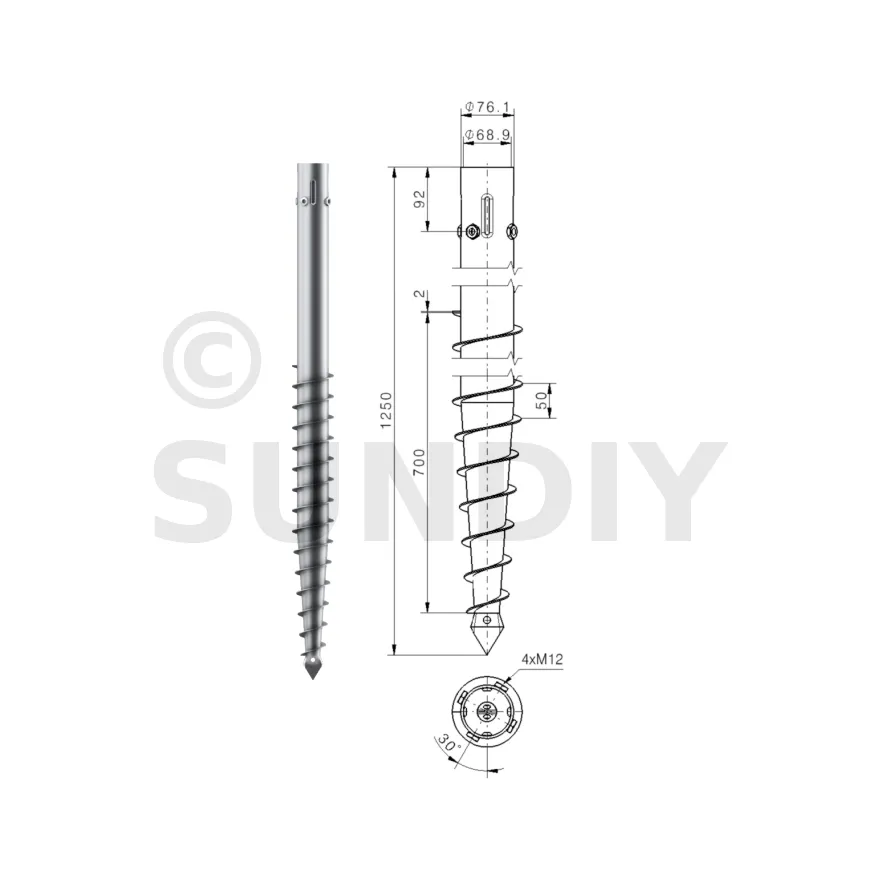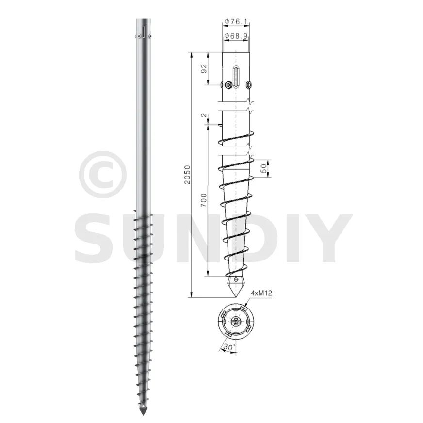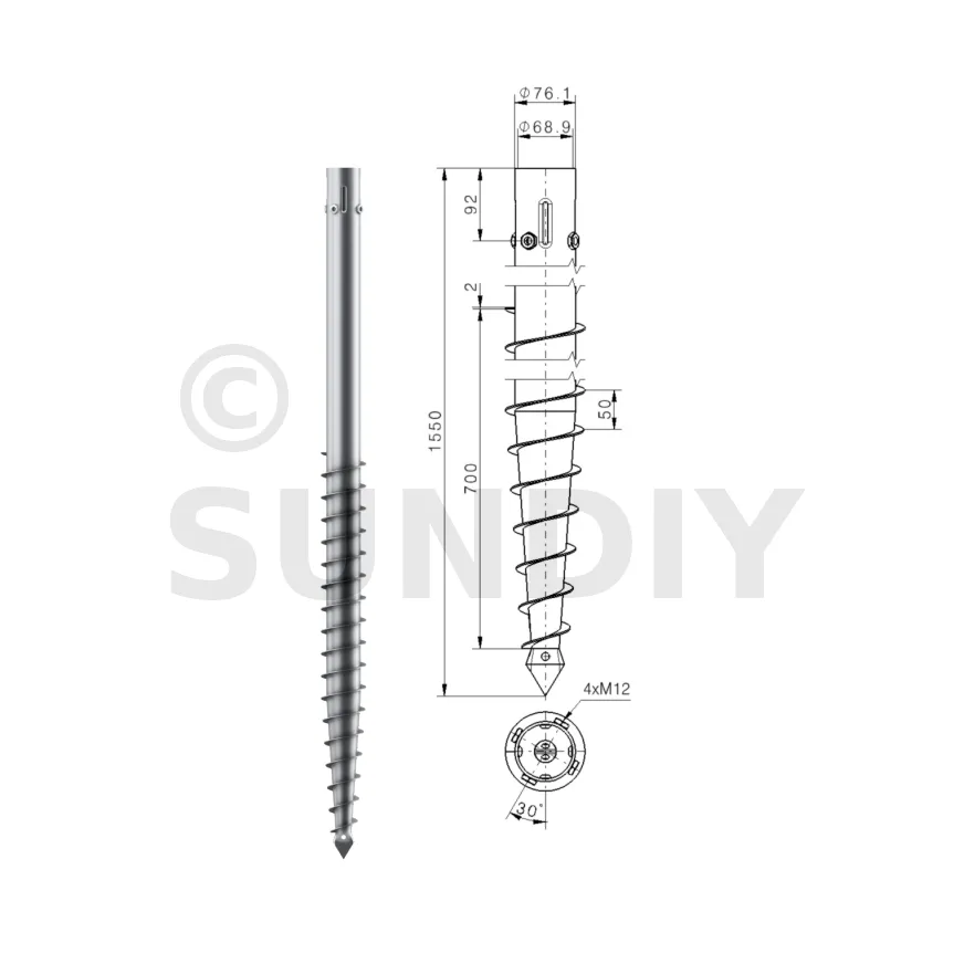 Une vis de fondation est donc composée d’un axe central avec :