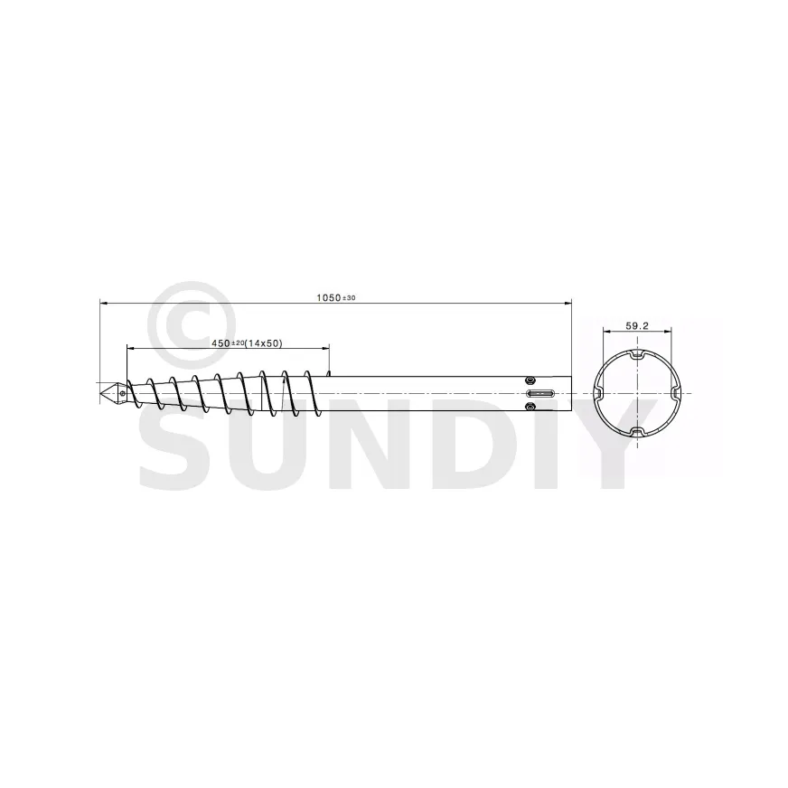 - à l’une des extrémités une pointe “harpon” surmontée d’une partie en spirale pour pouvoir creuser le sol,
