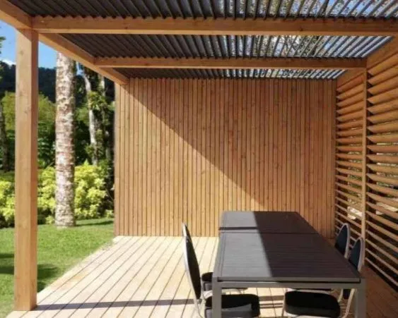 Les averses tropicales en Martinique peuvent être violentes. Avec nos pergolas en aluminium et bois, vous bénéficiez d’une structure robuste capable de résister aux intempéries. Les lames orientables permettent également de gérer efficacement l’écoulement de l’eau, évitant ainsi toute accumulation pouvant endommager votre mobilier de jardin.