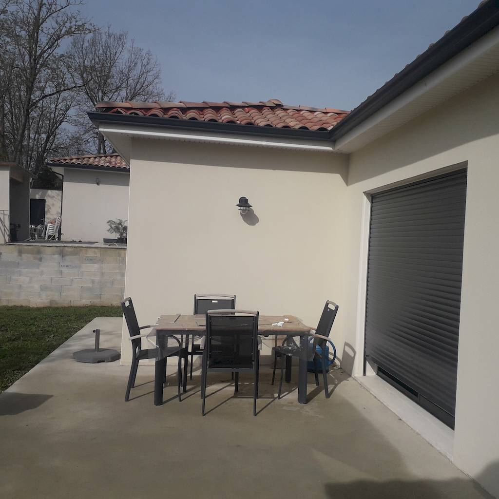 Notre client souhaitait aménager une partie de sa terrasse en y ajoutant une pergola bioclimatique de 3,80 mètres sur 4 mètres. Il exprimait également le souhait de se protéger du soleil grâce à des panneaux verticaux d’environ 1 mètre de hauteur, spécifiquement sur les côtés sud et est de la structure. Sur le schéma fourni par le client, il y avait une symétrie parfaite pour les deux travées, ainsi que deux panneaux pour servir de brise-vues. En ce qui concerne la fixation, le client était indécis entre une fixation murale ou l’installation de deux poteaux de chaque côté de la baie vitrée.