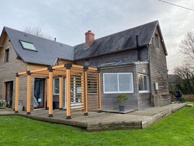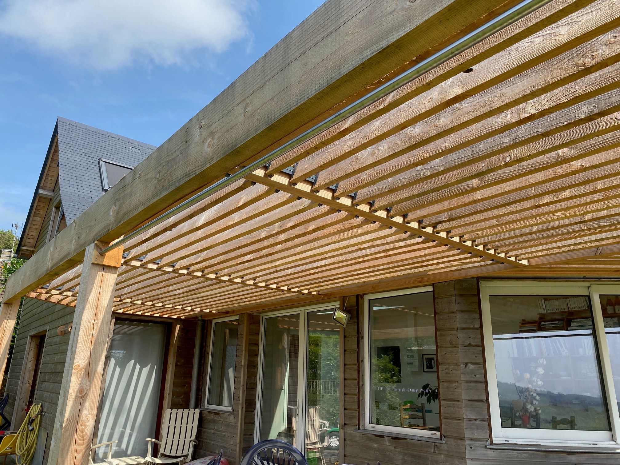 Accueil > S’inspirer > Construire une PERGOLA BIOCLIMATIQUE > Construction de pergolas bioclimatiques 100% SUNDIY, de A à Z > La terrasse de Pierre-François enfin à l’ombre - Etriers invisibles
