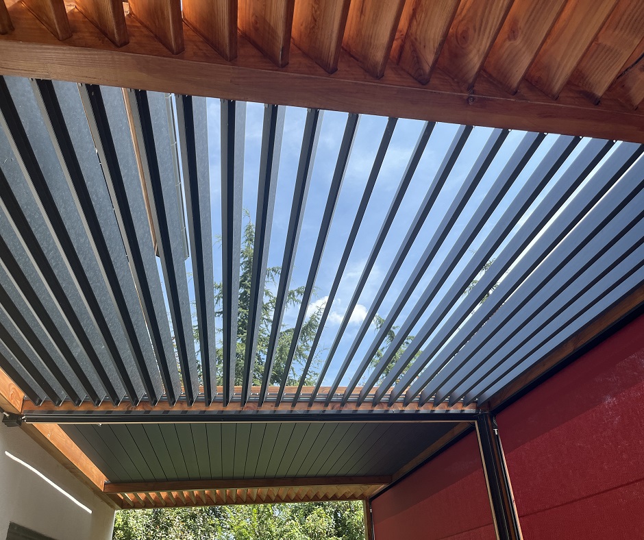 Accueil > S’inspirer > Construire une PERGOLA BIOCLIMATIQUE > Construction de pergolas bioclimatiques 100% SUNDIY, de A à Z > Alliance parfaite entre lames fixes et orientables - Etriers invisibles
