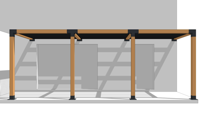 Accueil > S’inspirer > Construire une PERGOLA BIOCLIMATIQUE > Construction de pergolas bioclimatiques 100% SUNDIY, de A à Z > La terrasse toute mignonne de Patricia - Connecteurs et poteaux bois 12x12