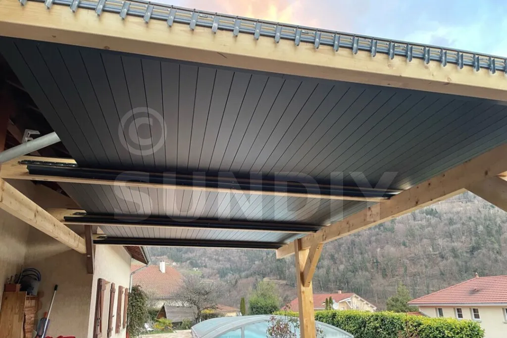 Le choix du bois n’est pas anodin. En utilisant des poteaux en bois issus de forêts françaises gérées durablement, SUNDIY allie respect de l’environnement, esthétisme et solidité. Le bois apporte une chaleur visuelle que l’aluminium seul ne peut reproduire. Associé à des mécanismes en aluminium recyclable, il crée un équilibre parfait entre tradition et modernité.