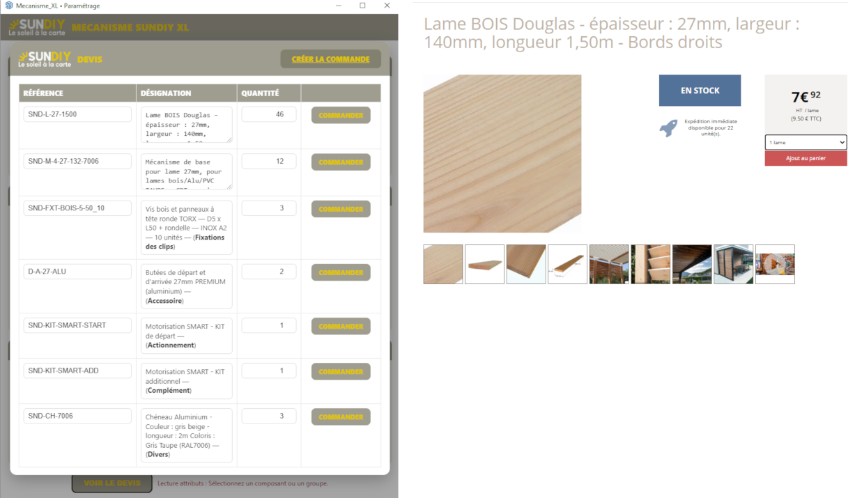 Pour finaliser votre devis, cliquez sur les boutons « Commander » de chaque ligne, puis ajoutez la quantité voulue dans votre panier sur la boutique.