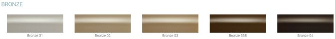 Les couleurs ci-dessus sont indicatives. Une couleur apparaît également différemment sur un écran que sur de l’aluminium. Un revêtement par poudre dans une couleur RAL est également possible